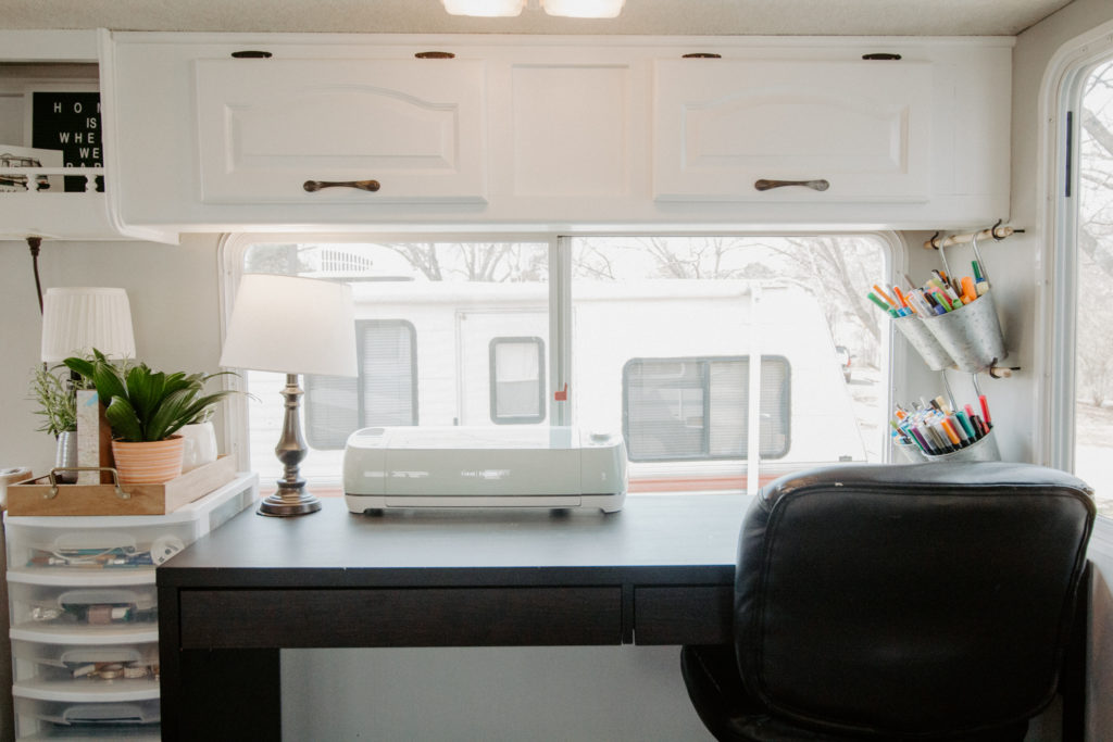 An example for me is that I love calligraphy and I have a calligraphy business. So when we moved into the RV, I really wanted to keep my desk and calligraphy supplies. We ended up getting rid of the couch in the RV, and managed to create a desk space for me!