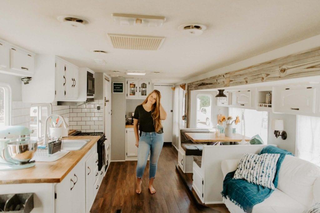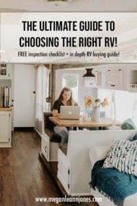 Each individual model of RV will be different! If you’re still not exactly sure what kind you’d like to get, I would suggest looking on Facebook marketplace and seeing what you like! The most important thing to me was the layout of our RV. We went to look at a Class A that had no slide outs and it felt SO cramped. I wanted ours to feel open and spacious, so I knew it needed to have slide outs! So if you’re open to different options, figure out what your non negotiables are, and go from there!